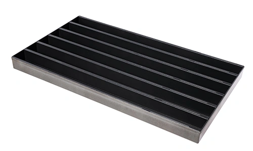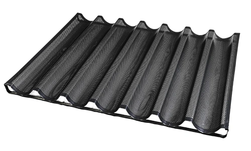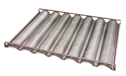 Las bandejas para baguettes de T-Shine están disponibles en varios tamaños y configuraciones. Para tamaños mayores, se ofrece un marco de refuerzo de acero inoxidable que proporciona una rigidez excepcional y una estabilidad estructural a largo plazo para uso industrial.