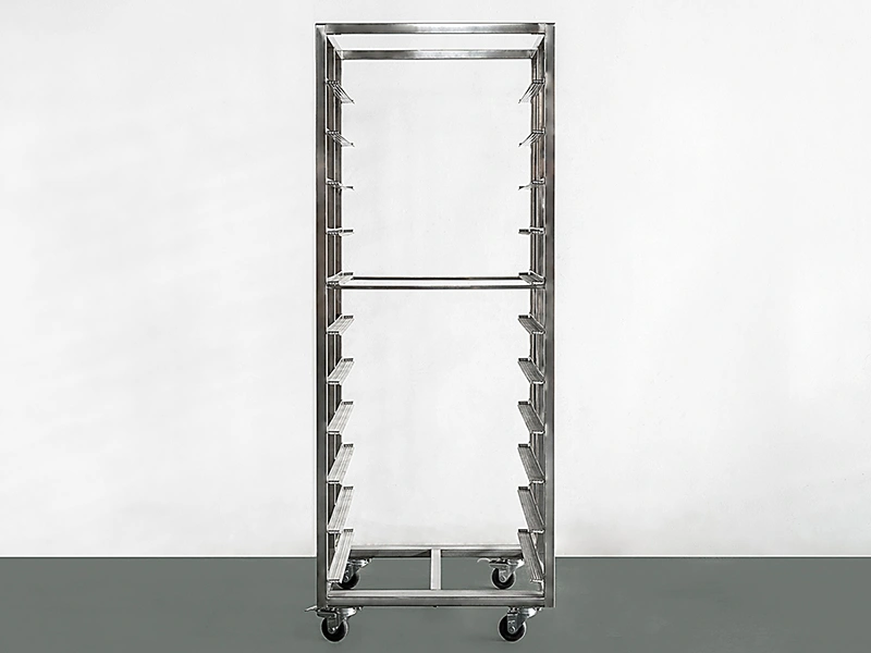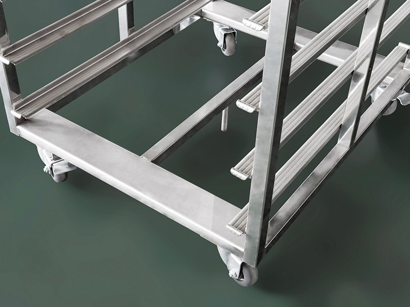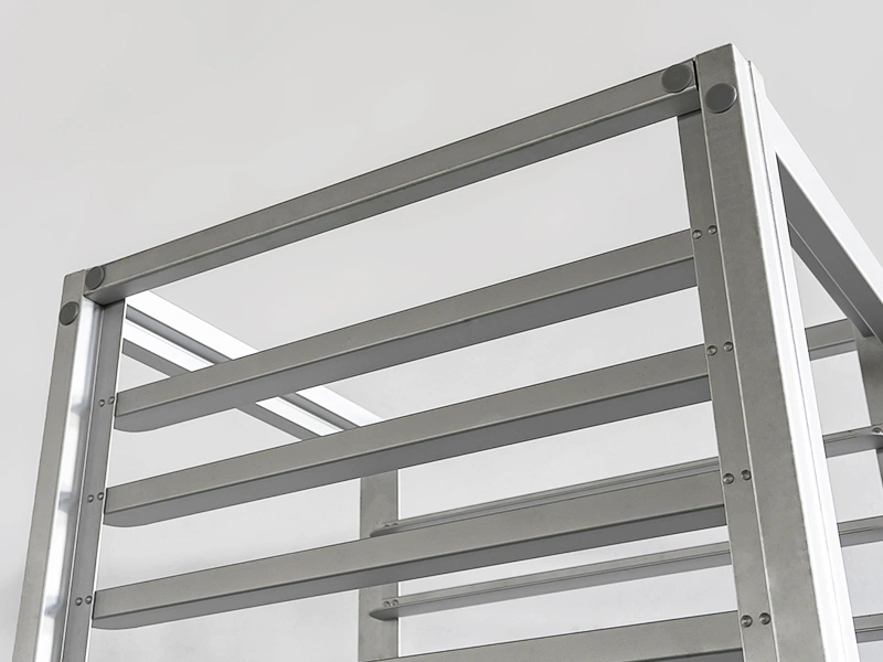 - Propiedades del material: El carro bandejero de aleación de aluminio es ligero y robusto, con un acabado superficial que cumple con los estándares de higiene.