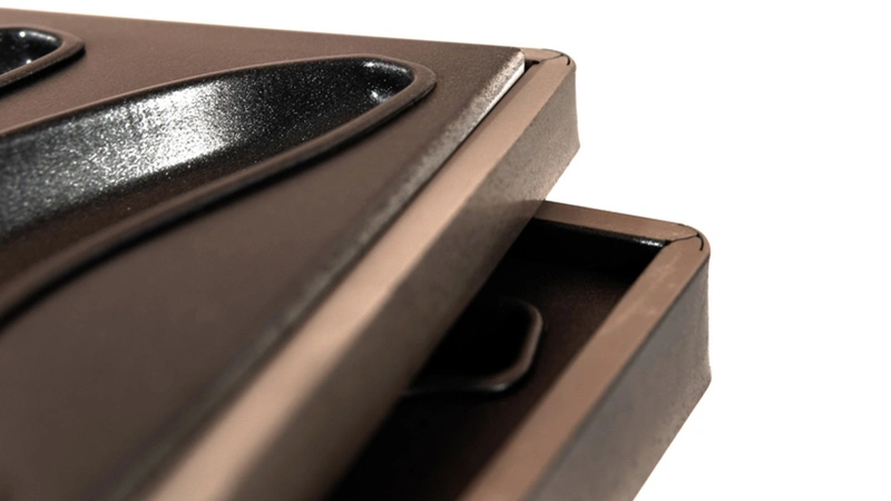 Todos nuestros moldes para pasteles personalizados cuentan con nuestro recubrimiento antiadherente T-ReXL Ultra, que prolonga su vida útil de 2 a 3 veces en comparación con los revestimientos tradicionales de PTFE de doble capa. Este revestimiento también reduce la necesidad de aceite durante el horneado, disminuye los costos de producción y mejora el sabor y la calidad de los productos horneados.